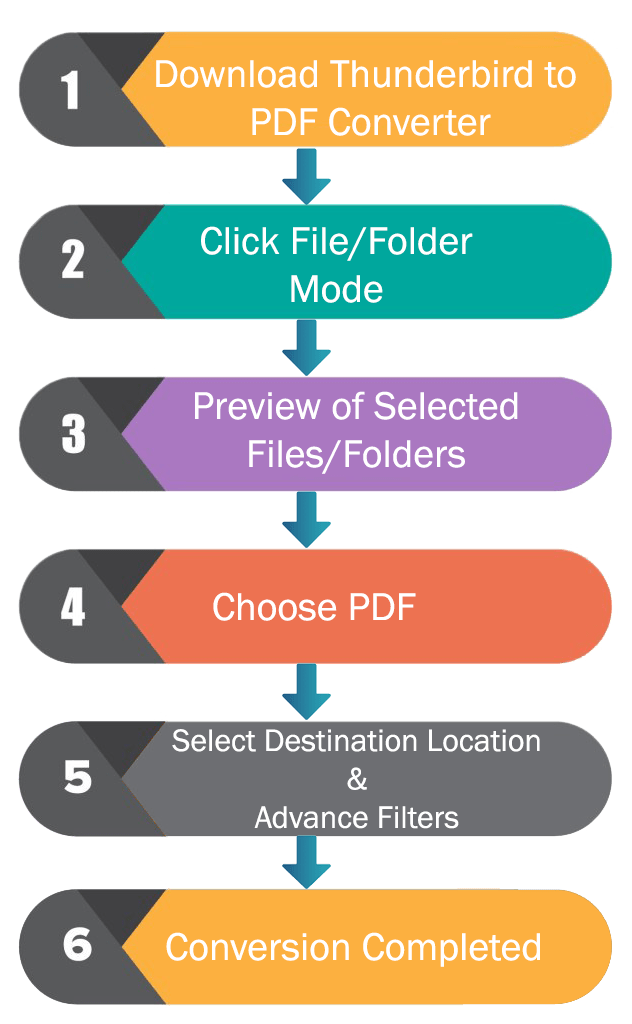 Thunderbird to PDF Conversion Program is accessible to all Windows Operating System of sizes 32 bit and 64 bit including Windows edition 10, 8, 7, 8.1, Vista, XP, etc. You don’t need to take tension about security of database as the tool transfer Thunderbird emails in PDF without single loss of file. Also the tool keeps all Meta data and Meta Formatting intact. The software does not save any of your personal information or credential in its database. See below mentioned chart to know how the software works.
